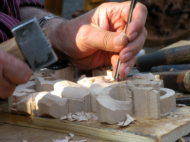 Craftsman carving decorative front boards for traditional Sicilian horse-drawn carts. Originally used to transport food, people and animals, nowadays they are purely decorative.