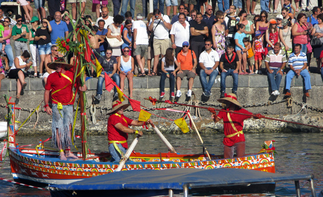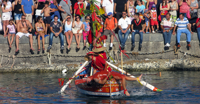 “Just wait until the fish gets away!” chuckles the man next to me. “Then there will be a surprise!” The crowd waits with bated breath – a good 90% of them are probably locals who see this every year, so they know what’s coming. The third time that the fish slides into the water, covered in blood but still swimming, the fishermen are so comically enraged that they really do capsize their boat. Into the water they go! The boys from the boats around the harbour have all been waiting for this moment and with whoops of glee they launch themselves into the sea, too, to help right the boat. The water is red with blood and a real fish, caught earlier and planted in the bottom of the boat, bobs to the surface. The fishermen may have lost their man, but after such an entertaining show it’s good to know that they’ve still got their fish.