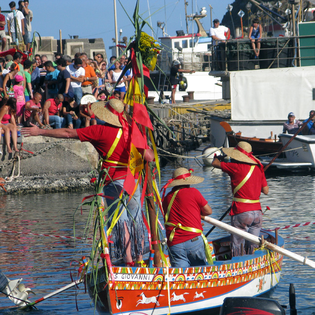 It’s 24 June, and I’m in Acitrezza to see ‘u pisci a mari’ which, if my shaky understanding of Sicilian dialect is holding up, translates to something like ‘the fish in the sea’. The rest of the day, and indeed much of this month, is dedicated to the town’s patron saint, San Giovanni Battista. When these seafolk aren’t celebrating their saint, however, they celebrate fish: hence ‘u pisci a mari’. I’m told it’s a pantomime. In a boat. I’m not sure what to expect, but it sounds entertaining.