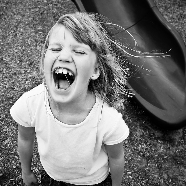 At the next stop a young girl tears onto the train, yelling, and charges the length of the carriage. Her girly, expensive-looking floral smock belies her wild behaviour – it seems an odd choice of clothing until a slim, harassed woman who looks like her grandmother puffs into view. She’s also dressed in good-quality clothes but her hair is unkempt and her face only sketchily made-up; at a guess she’s not the one who does the regular morning shift with kiddo. She calls down the carriage in a voice tinged with hysteria. “Stop! Stop right there!” The girl obeys for a moment – but only a moment; she whirls on her heel and barrels back the way she came, still at a run and still yelling.