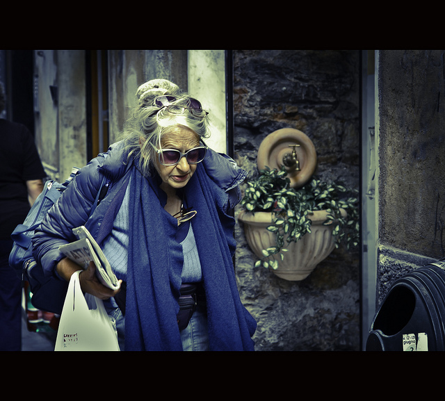 Two minutes later I’ve bought my ticket from the grumpy cashier and am heading towards the machines myself. When I reach them, the old lady is standing beside them, gazing down the stairs to the underpass with trepidation. She glances up at me and gives me a pleading look. “Can you help me, gioia? The suitcase …” She trails off, finishing her sentence with a helpless shrug. I smile and reach for the handle of her bag. Her mouth opens in a perfect ‘O’ of horror. “Oh no, gioia, I’ll help, don’t do it on your own!” I demur – the suitcase is tiny and light. “It’s fine, signora. You’re more than welcome.” She twitters at me all the way down the stairs. Thankyouthankyouthankyou, gioia. Oh, this station’s a fright – especially for the elderly. You’re so kind, gioia, bless you!”