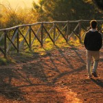 Some days, when you’re tired and fractious and under the weather, the only way to find balance again is to take a walk among the pines. And if those pine trees sit below a smoking volcanic crater turned deep red by the setting sun? So much the better.