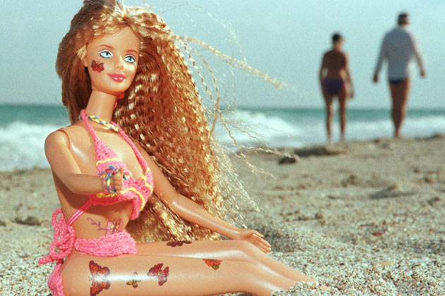 Another small child – this time an unaccompanied girl in a pink bikini and multicoloured plastic necklace – makes her way deliberately to the shallows. In her hands she has three Barbies, their hair long and blonde. Hers is, too, but instead of perfect artificial peroxide it’s honey-coloured and mermaid-straggled from swimming. She sits herself and her girls solemnly on a rock, from which she dips them one by one into the sea for a controlled swim. Concentration writ large on her face, she then seats them in a row before wading away from them into deeper water. With her back turned and bent over as she swishes her hands through the water ahead of her to make a bow-wave, she doesn’t notice one of the Barbies falling off the rock and starting to float out to sea in her wake. I open my mouth to warn her, but as I do so she turns and sees for herself. She returns and gently places her wayward charge back above the waterline before sitting down with the reunited trio and, humming to herself, arranging their long limbs and hair just so.